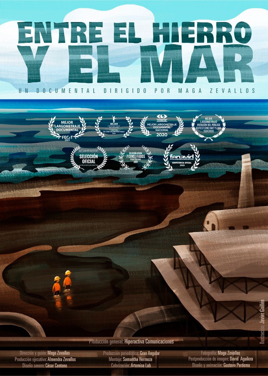El documental Entre el hierro y el mar aborda la compleja relación entre minería y desarrollo; la forma en que esa actividad afecta la economía local y las dicultades que existen en el distrito de Marcona para lograr la diversicación productiva y contar con infraestructura estratégica, pese a las enormes potencialidades que presenta y a los ingresos que supone la distribución del canon y las regalías.